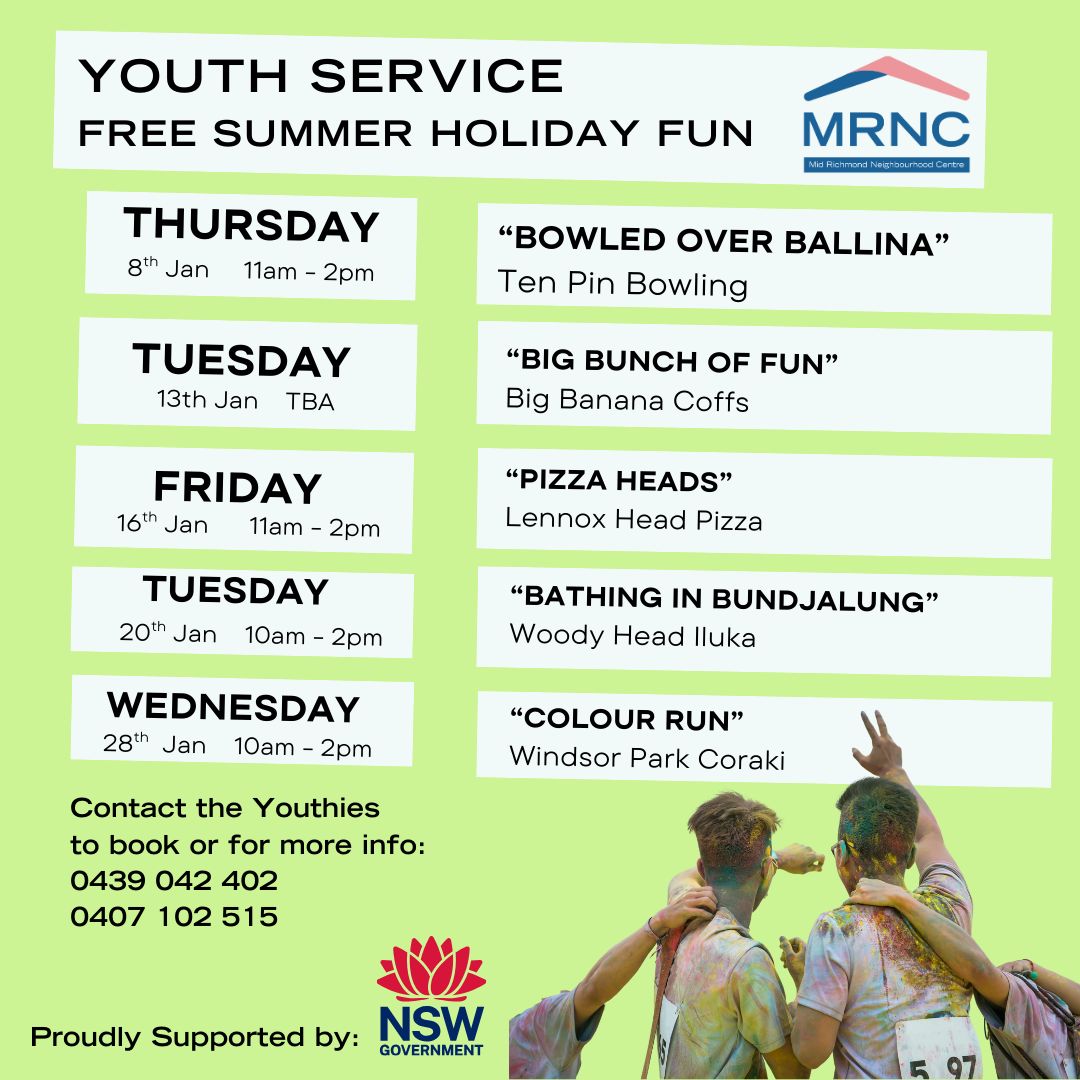 Join the Colour Run fun at Windsor Park in Coraki as part of MRNC's holiday program. Wednesday 28 January, 10am-2pm. |