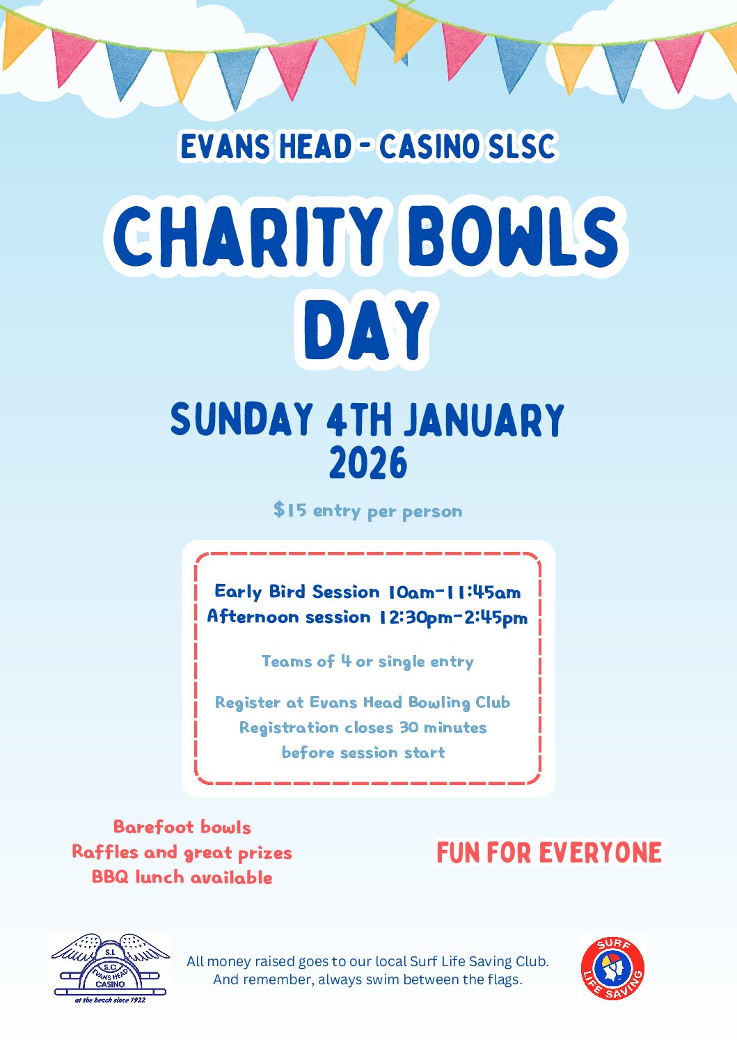 Join the fun for a great day of barefoot bowls while raising funds for our local Surf Life Saving Club. Sunday 4 January from 10am. |